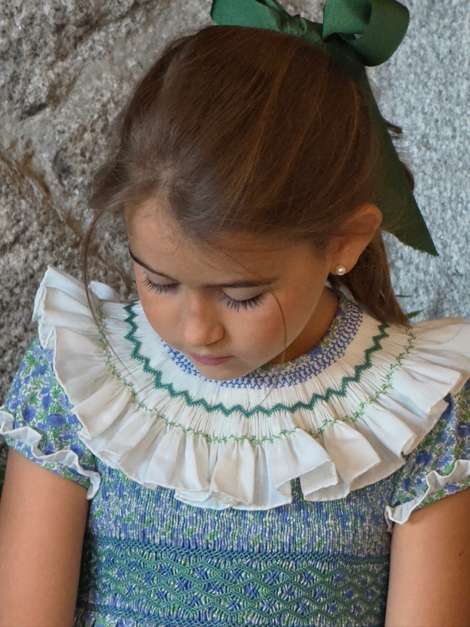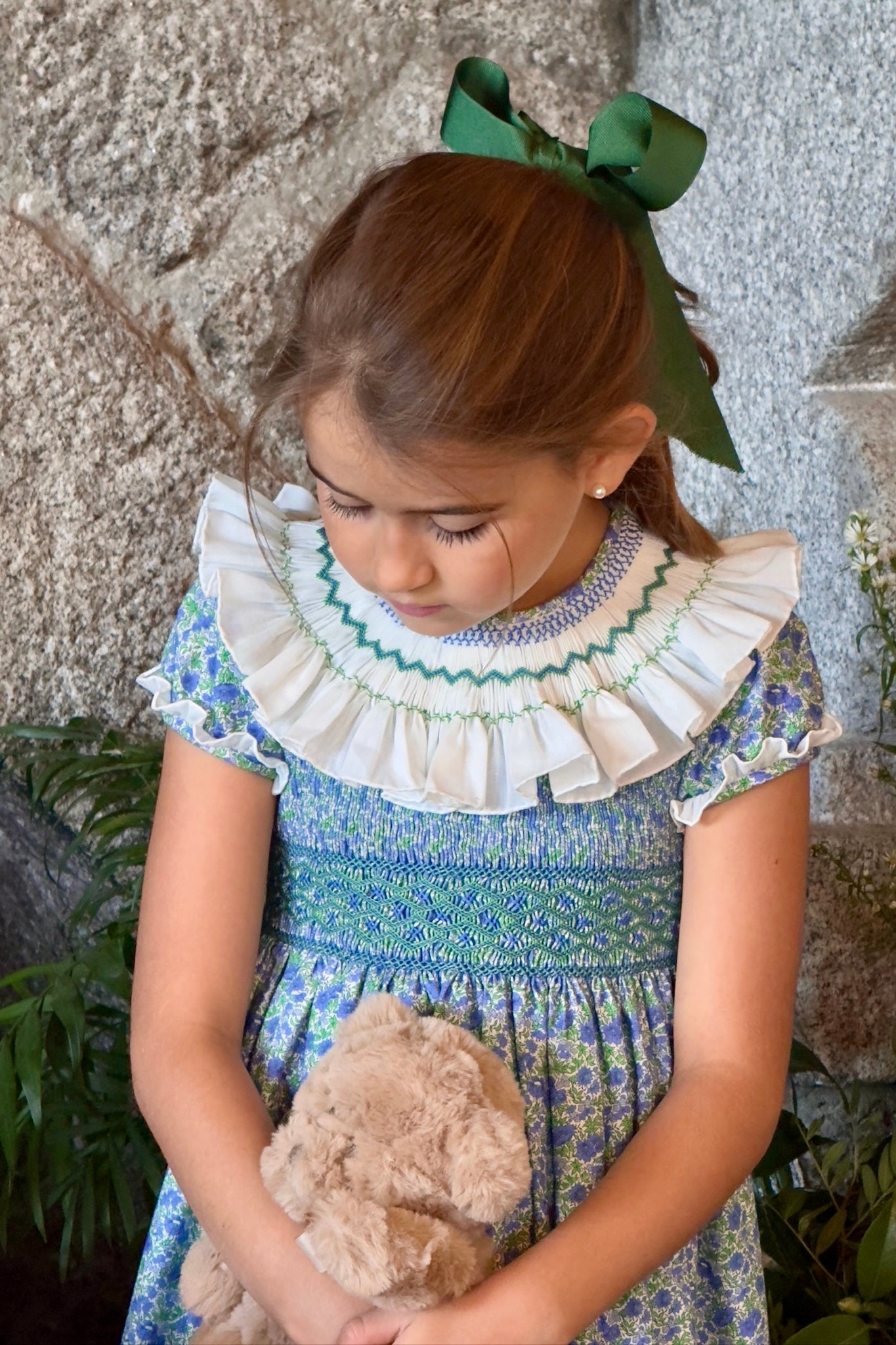 Descripción artículo: Vestido de viyella estampada con punto smock. Elaborado de manera artesanal en España.