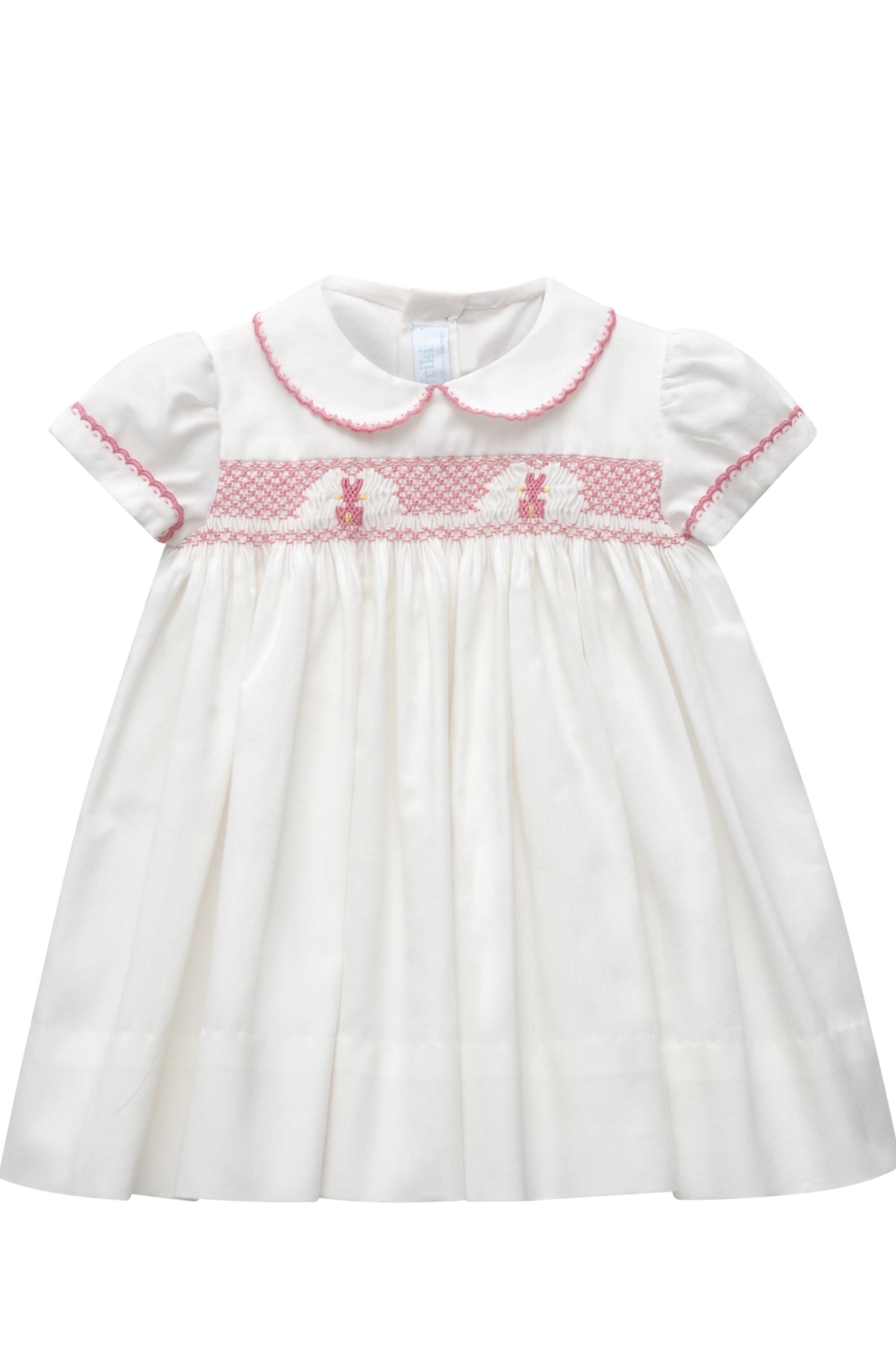 Descripción artículo: Vestido en piqué de canutillo con punto smock de animalitos y festones bordados a mano en cuello y puños. Elaborado de manera artesal en España. Un clásico de nuestra firma.