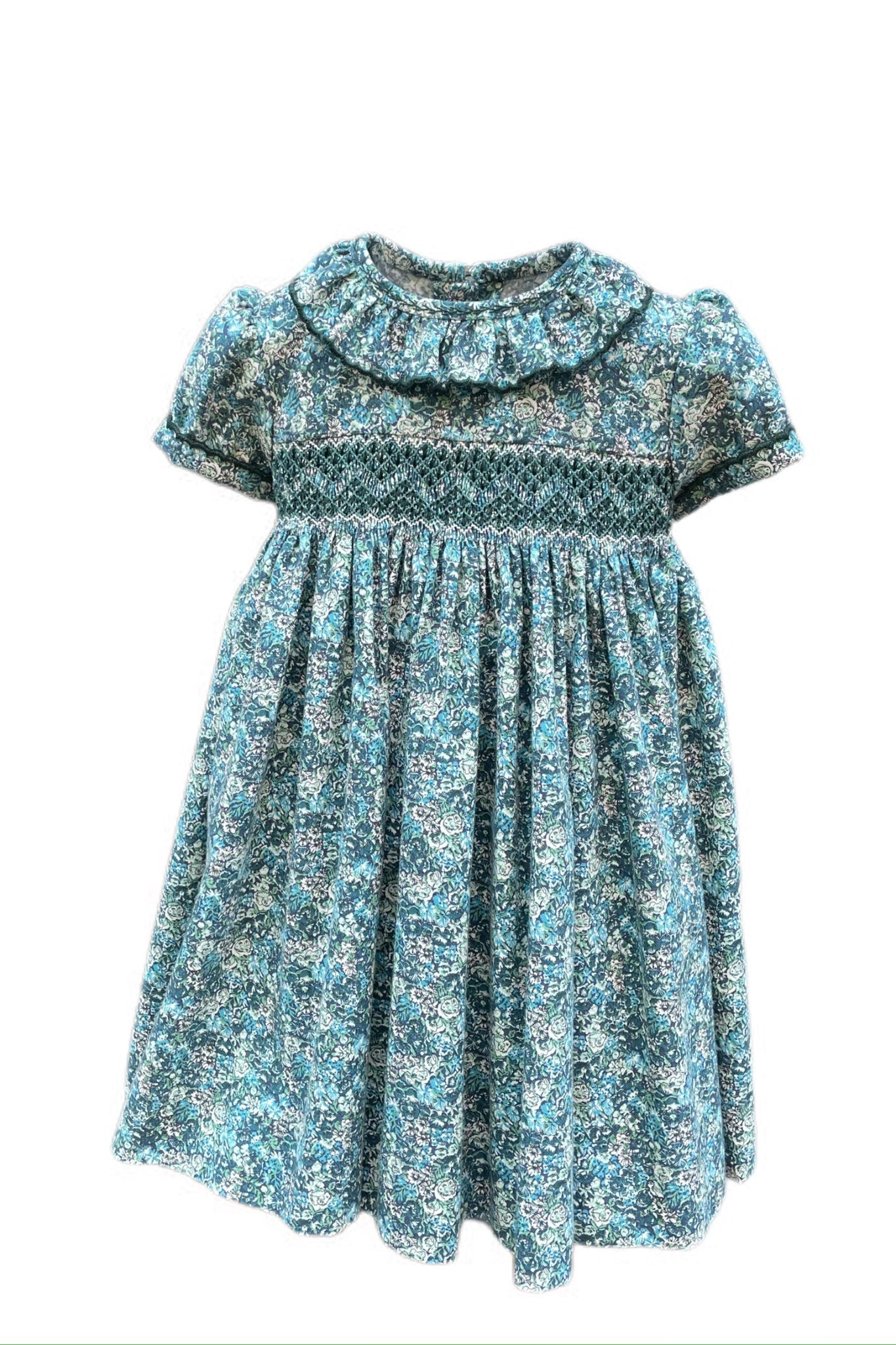 Descripción artículo: Vestido en viyella estampada con punto smock. Cuello y puños con festones hechos a mano. Elaborado de manera artesanal en España.
